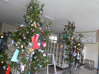 笑顔わくわくプロジェクトのクリスマスツリーに、飾りがたくさんつきました。