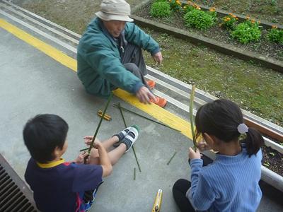 そして、手作りの竹馬を四セット寄贈していただきました。