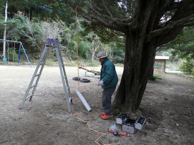 白樫さんが第二グラウンドに手作りのブランコを作成してくださっています。
