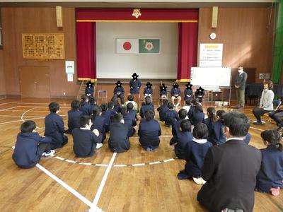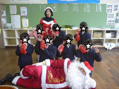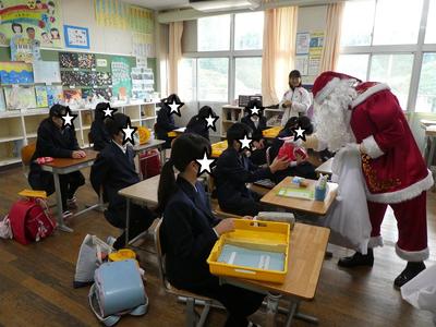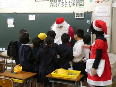 昨日は忍者の森にいたサンタクロースが大野小の校舎にやってきました。