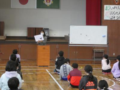 今日は雨で遠足はできませんでした(月曜に延期です)が、体育館で6年生を送る会がありました。