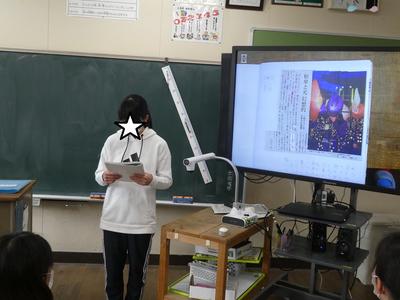 6年生は毎日二人ずつ新聞記事を使って一分間スピーチをしています。