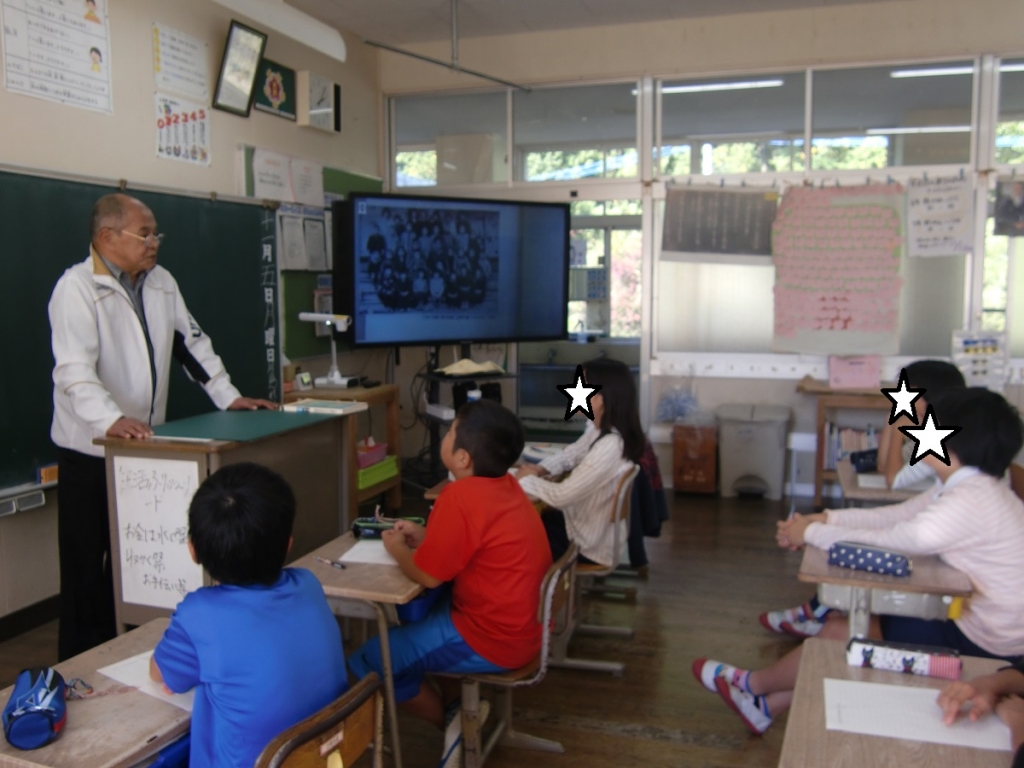 5・6年生の授業で、地域の方(徳尾様)が戦争についての体験を話してくださいました。