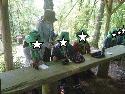 県の林務科の上方さん、水俣・芦北えべっさんシェアリングネイチャーの会の井上先生が講師となり、ネイチャーゲームをして、みどりのことをたくさん教えてくださいました。