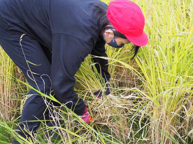 芦北町役場や地元の方々に教えていただきながら、稲刈りができました。6年生は今までの経験から作業の手際がよく、次々と稲を刈ったり束ねたりしていました。