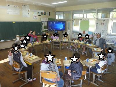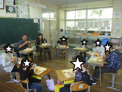 学期に一回、みんなでくじを引き、異学年の交流給食をしています。