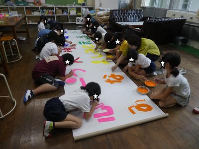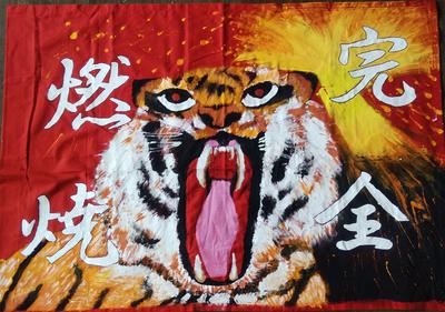 高学年が結団式に間に合うように頑張って描いた旗です。