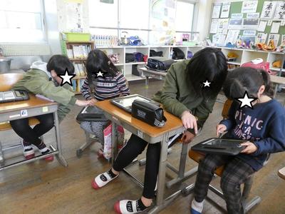 1年生と4年生が一緒にeライブラリで勉強しました。