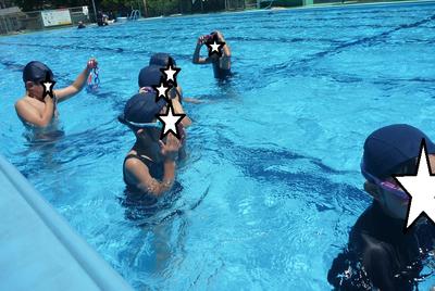 ダルマ浮きやけのび、宝探し、水中ジャンケンなどをしました。