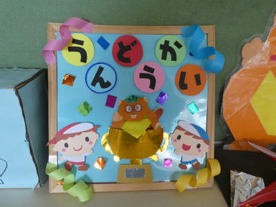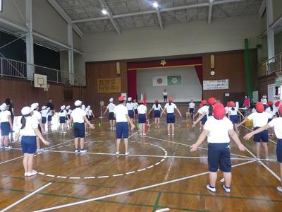 今日は雨のため、体育館で運動会の全体練習をしました。