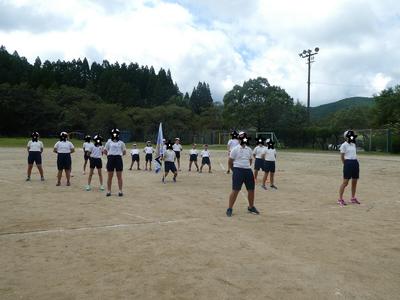 今日の全体練習は運動場で行進をし、開閉会式を通しました。