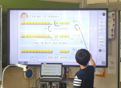 電子黒板に書き込みながら自分の考えを上手に説明しています。