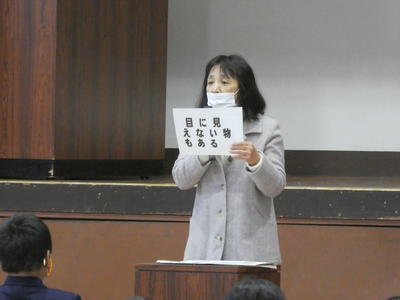 校長先生のお話です。目に見えない大切なことについてお話をされました。