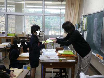 「生活振り返りカードに記入して、冬休みは規則正しい生活をしてくださいね。」