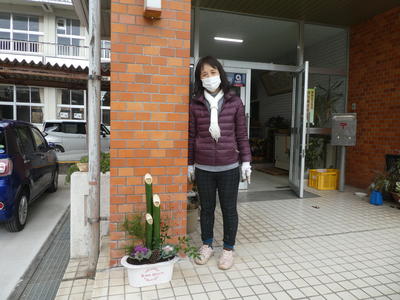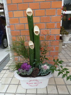 校長先生が門松を一人で作られました。