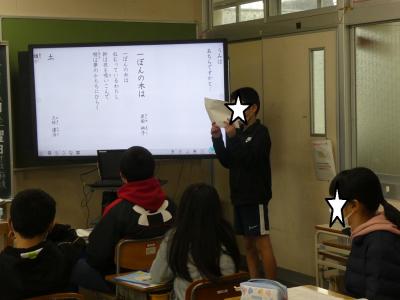 高学年は詩の朗読と意味を考え、発表しました。