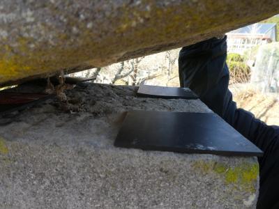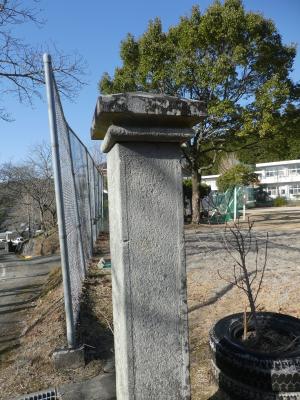 大野小の運動場につながる古い石の柱がありますが、上がぐらぐらしていました。