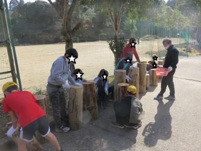 地域の応援団の方が、鬼火焚きの準備をしてくださっています。