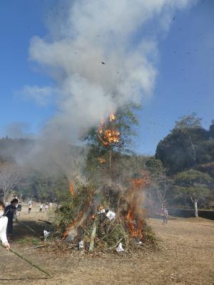 今日の昼に鬼火焚きをしました。