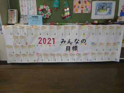 2021年のみんなの目標です。一人一人がしっかり自分の目標を書いています。