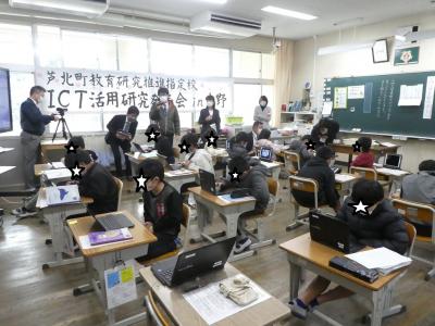 新型コロナウイルスの流行があり、他の学校の先生方は来られませんでしたが、指導主事の先生と大野小の先生が参観し、研究授業が行われました。