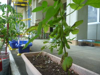 初めてとは思えません。パプリカ、枝豆、ミニトマトなどです。
