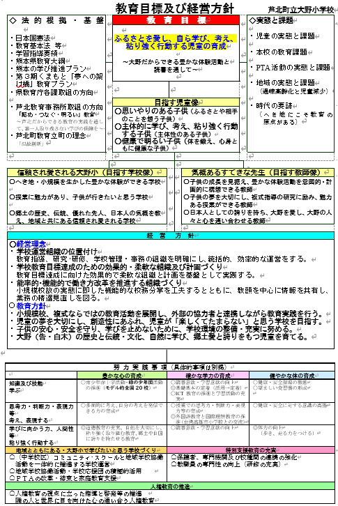 ふるさとを愛し、自ら学び、考え、粘り強く行動する児童の育成