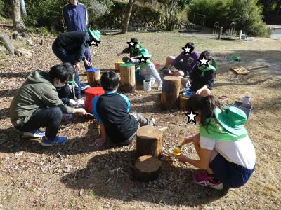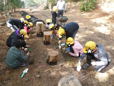5・6年生が、応援団の方と一緒に丸太を埋める作業をしました。忍者の森と第二グラウンドの二か所です。