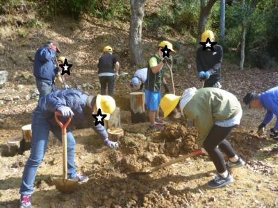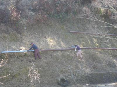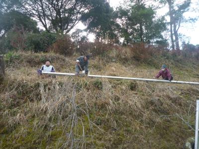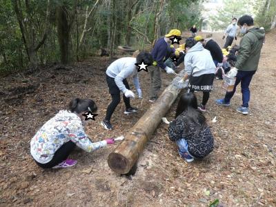 忍者の森再生プロジェクト委員会の方々が、忍者の森の斜面にストッパーをつけてくださいました。