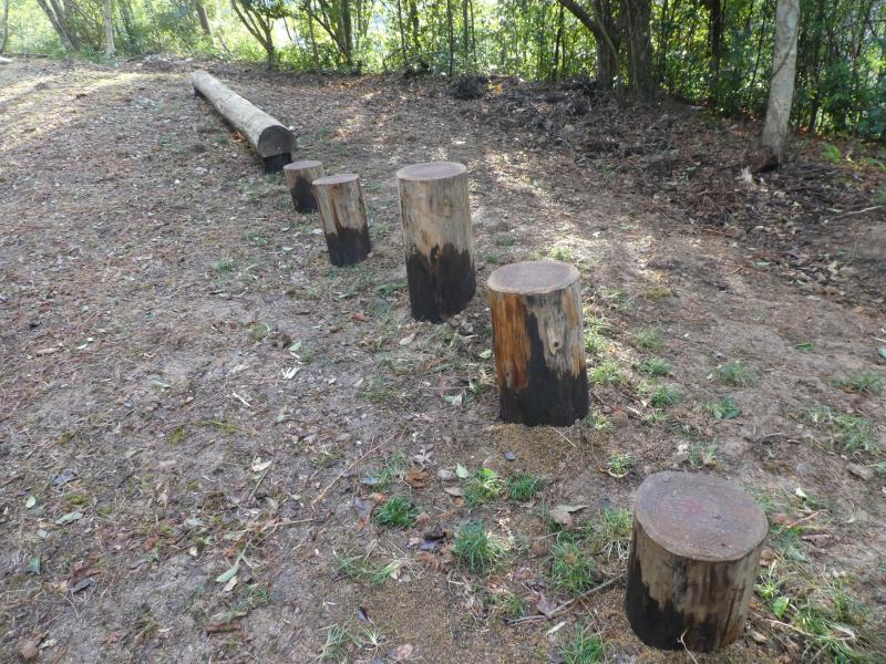 地域の方が剪定してくださり、子どもたちが木や枝を運んだことで、今、忍者の森がとてもきれいになっています。