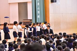 その後、児童代表の6年生から立派な歓迎の挨拶があり、先生方を温かく迎えてくれました。「命を大切にする大津小」「友達に優しい大津小」を目指してみんなで一緒に頑張っていきたいですね。