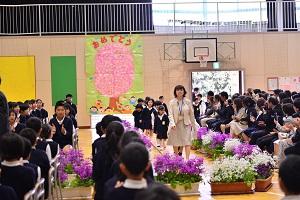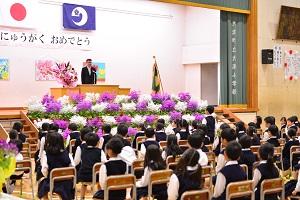 担任の先生の後に続いて、元気よく入場してきた1年生。自分の名前が呼ばれたら、大きな声で返事をすることができました。校長先生のお話や6年生の歓迎の言葉を前を見て静かに聞き、とても立派でした。149名の新入生を迎えることができ、とてもうれしく思います。