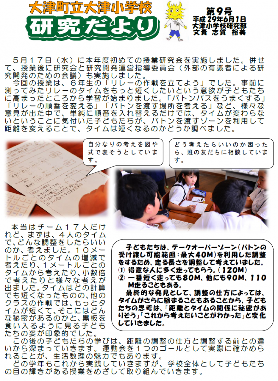 なお、「生活数理」開発の理念及び理論は新学習指導要領全面実施となった本年度の各教科等の実践においても発展的に継承しています。