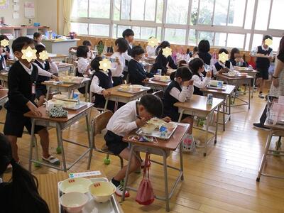 4月14日(水)。この日、1年生は、入学して初めての給食です。