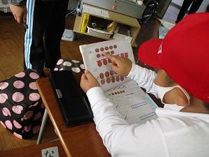 図書室前を通りかかると、何かをじっと見ている子どもたち。