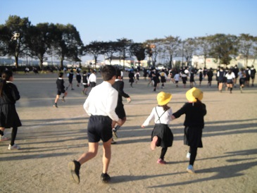 師走に入り、気温がぐっと低くなり、肌寒くなりました。そんな中、大津小学校では、毎年恒例の「朝の全校ジョギング」を始めました。10分間という短い時間ですが、子どもたちは自分のペースで走っています。1月の持久走大会に向けて、これから毎週月・水・金曜日に走って、体力をつけて行きます。