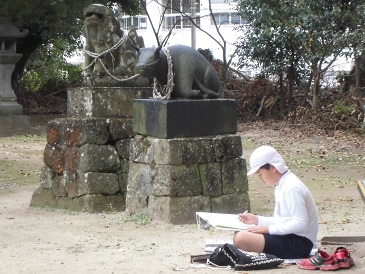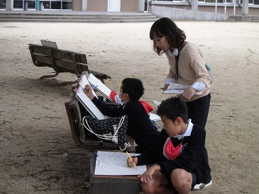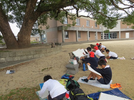 少し肌寒い季節になりましたが、天気に恵まれ、学校の外に写生に出かけました。子どもたちは、自分たちが育ったふるさとの風景画を描きました。それぞれの場所で集中して下書きを描き、充実した時間を過ごすことができました。学校で色塗りをして仕上げていきます。