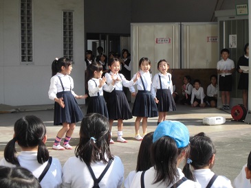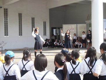 お昼休みの時間を利用して、中庭でキラキラ集会が行われました。ハンドベルや歌、ダンスなどが有志の子どもたちから披露されました。中庭には、たくさんの観客(子どもたち)が集まり、声援を送りました。この日のために練習を頑張ってきた子どもたちに拍手です。