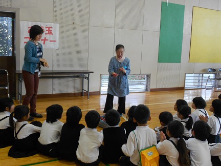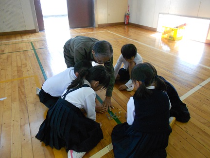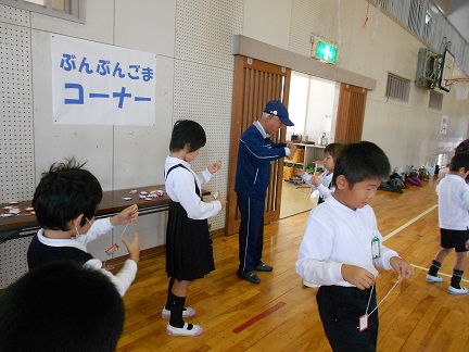 今日、ふれあい交流会がありました。昔からある遊びを地域の方々に教えて頂きました。初めて遊ぶものばかりでしたが、子どもたちはとっても楽しそうにしていました。長い間みんなが楽しめる遊びってステキですね。子どもたちが大人になってからも受け継いでくれるといいですね。