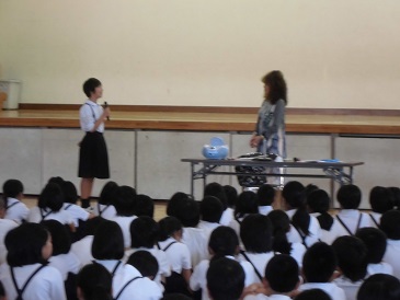 について講演して頂きました。「英語は世界中のみんなと話しができる。」「世界中、みんな同じ人間。」など英語や世界のことを楽しくお話し下さいました。最後に「チャレンジ」することの大切さを子どもたちに教えて下さいました。阿部フォード恵子先生、ありがとうございました。
