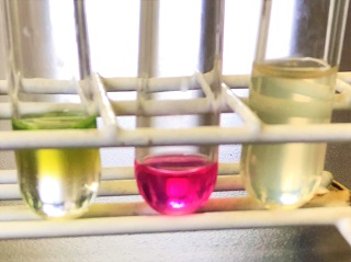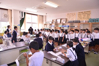 今日の学校の様子です。理科の授業では、花の色素を使った酸性、中性、アルカリ性についての学習をしています。
