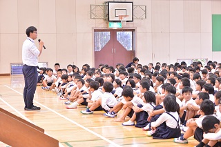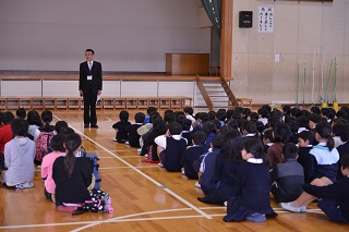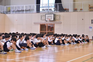 校長先生からのお話では、「大津小学校みんなが安心して楽しく過ごせる学校になるように、相手を思いやり、行動の理由を尋ねよう。違いを認め合い行動で返そう」に取り組もうとするお話をしていただきました。