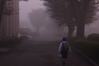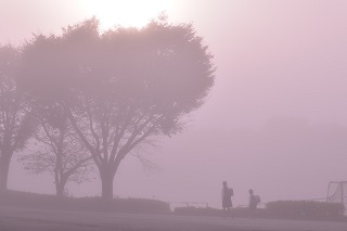今日の学校の様子です。今日は朝からとても濃い霧に囲まれました。
