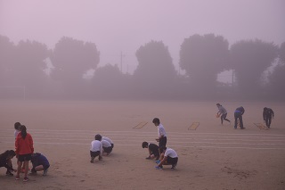朝から陸上の練習を頑張っています。