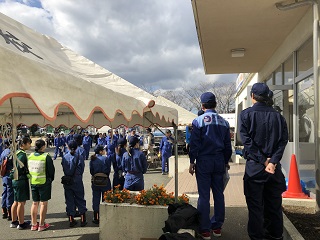今日は学校で大津町の総合防災訓練が行われました。