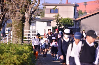 今日は良い天気、朝から元気に登校する様子が見られました。
