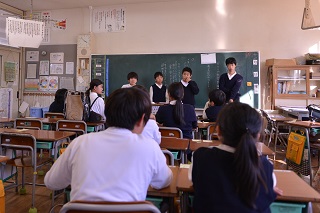 6年生に対し感想、思った事などのお返しをする様子です。