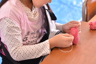 いろいろな体験もできました。お手玉作り体験をしています。