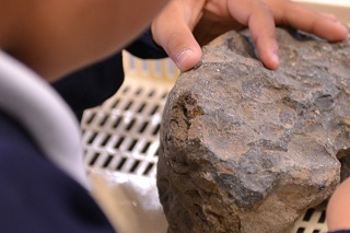 6年生が化石の観察をしていました。いくつ見つけたかな?