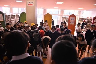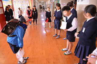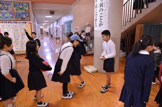3年生は廊下の広いスペースで発表会をしました。
